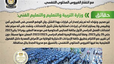 أوضح أنه لا صحة لحذف أي أجزاء من المناهج في امتحانات الفصل الدراسي الأول لصفوف النقل خلال العام الحالي 2022/2023، وأنه لم يتم إصدار أي قرارات بهذا الشأن، مُشددةً على أن امتحانات الفصل الدراسي الأول لصفوف النقل بكافة المراحل التعليمية (الابتدائية والإعدادية والثانوية) ستتضمن منهج الفصل الدراسي الأول كاملًا، دون حذف أي جزء منها، موضحةً أن كافة الأسئلة ستكون من داخل المناهج المقررة، على أن يتم بناء الأسئلة وفق المواصفات الفنية للورقة الامتحانية وتخاطب جميع المستويات الطلابية، مُناشدةً الطلاب وأولياء الأمور عدم الانسياق وراء تلك الأخبار المغلوطة، مع استقاء المعلومات من مصادرها الرسمية.