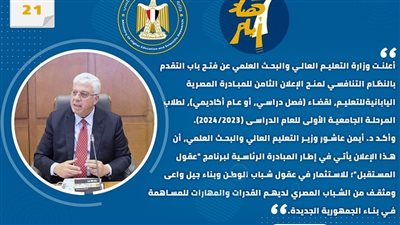 وجهت وزارة التربية والتعليم والتعليم الفني، تعليمات مهمة بشأن التقديم في المدارس المصرية اليابانية للعام الدراسي 2023/ 2024، مشددة على ضرورة توقيع ولي الأمرعلى إقرار بالعلم والموافقة على قواعد القيد بالمدارس المصرية اليابانية، وكل اللوائح الداخلية للمدرسة، بمجرد استكماله لاستمارة التقدم الإألكترونية، وفي حال رفض ولي الأمر التوقيع على الإقرار، سيتم إلغاء طلبه، والانتقال إلى الاسم التالي.