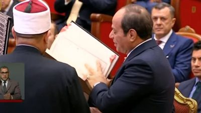 أهدى فضيلة الإمام الأكبر الدكتور أحمد الطيب، شيخ الأزهر، نسخة من كتاب الله عز وجل، إلى الرئيس عبدالفتاح السيسي خلال احتفالية وزارة الأوقاف بليلة القدر.
