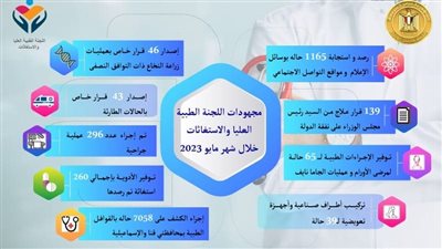 من جانبه، أكد الدكتور حسام المصري، المستشار الطبي لمجلس الوزراء ورئيس اللجنة، على ما تلقاه اللجنة الطبية العليا والاستغاثات من دعم من رئيس مجلس الوزراء، وتعاون من الوزارات والجهات المعنية، موضحًا أن عمل اللجنة يشهد توسعات وتحركات واضحة لتعزيز التواصل مع المواطنين لرصد استغاثاتهم الطبية والاستجابة لها، لافتا في السياق إلى جهود وحدة الرصد وفريق التدخل السريع وفريق المتابعة والتطوير داخل اللجنة، في التعامل مع استغاثات المواطنين الطبية.