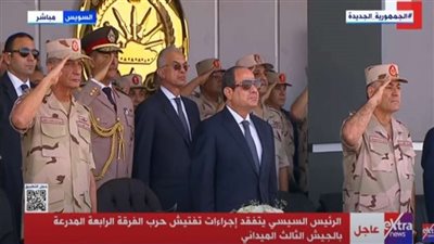 وجه الرئيس عبدالفتاح السيسي، رئيس الجمهورية القائد الأعلى للقوات المسلحة التحية والتقدير والشكر للقوات المسلحة على جهودها في وقت الحرب والسلم، وبمرور 50 عامًا على نصر أكتوبر المجيد، متابعًا «نحن موجودن في تفتيش حرب الفرقة الرابعة المدرعة وهو ضمن الاحتفال بمرور 50 عامًا على نصر أكتوبر، وكانت هناك أنشطة متعددة في ذكرى أكتوبر ولكن للظروف الراهنة تم تقليلها إلى أقل ما يمكن مراعاة للظروف في المنطقة».