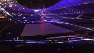 وقبل انطلاق المباراة شهد استاد مصر بالعاصمة الإدارية الجديدة حفلا بإشعال الألعاب النارية و"الليزر" التى ملأت سماء العاصمة الإدارية.