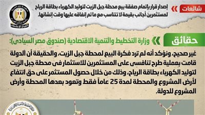 ونناشد وسائل الإعلام المختلفة تحري الدقة والموضوعية في نشر الحقائق والتواصل مع الجهات المعنية للتأكد من الحقائق قبل نشر معلومات لا تستند إلى أي حقائق، وتؤدي إلى بلبلة الرأي العام، وللإبلاغ عن أي شائعات أو معلومات مغلوطة يرجى الإرسال على أرقام الواتس آب التابعة للمركز الإعلامي لمجلس الوزراء (01155508688 -01155508851) على مدى 24 ساعة طوال أيام الأسبوع، أو عبر البريد الإلكتروني (rumors@idsc.net.eg).