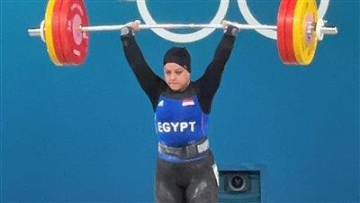 - سارة سمير الحائزة على الميدالية الفضية في لعبة رفع الأثقال.