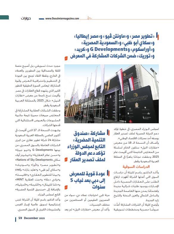 وأقيمت نسخ ناجحة من معرض «عقارات النيل» خلال 2025 بالمملكة العربية السعودية وقطر.