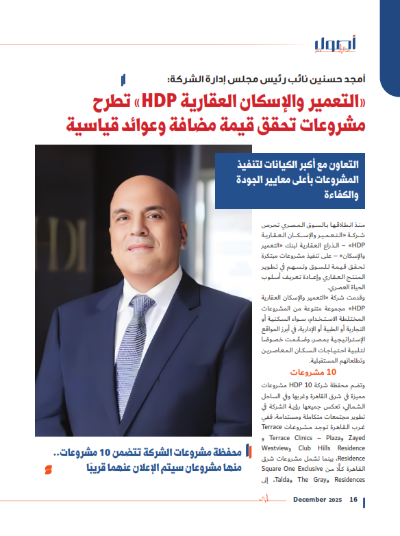أمجد حسنين : «التعمير والإسكان العقارية HDP» تطرح مشروعات تحقق قيمة مضافة وعوائد قياسية