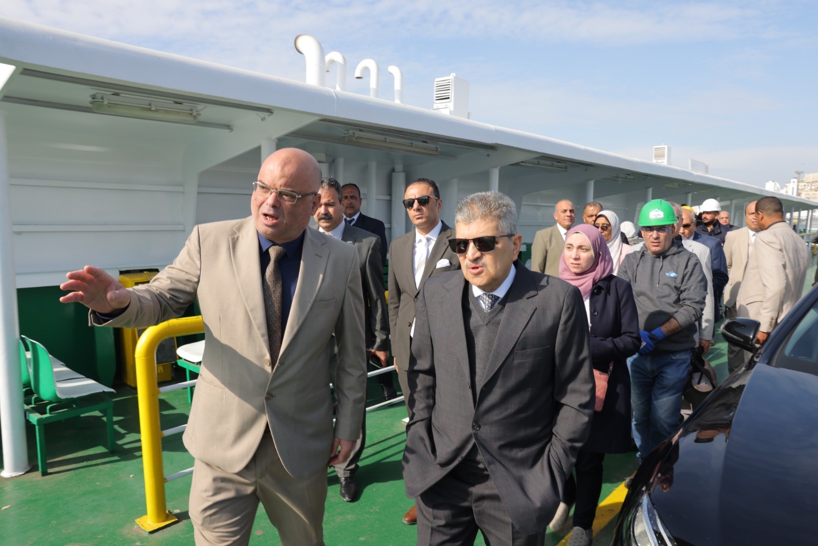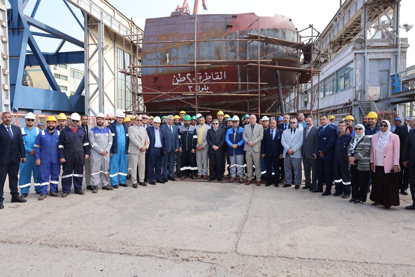 ثم تعرف رئيس الهيئة على مستجدات أعمال بناء قاطرة بقوة شد 20 طن لتلبية احتياجات الترسانة بنسبة إنجاز بلغت 30٪ بساحة الترسانة، بالإضافة إلى متابعة أعمال بناء معديتين ركاب حمولة 320 طن للمعدية الواحدة بنسبة إنجاز قدرها 40% وذلك لخدمة حركة عبور المركبات والأفراد بين بورسعيد وبورفؤاد.