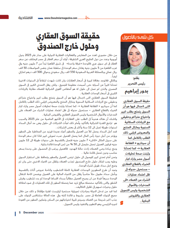 حقيقة السوق العقاري وحلول خارج الصندوق - بقلم: رئيس التحرير بدور إبراهيم