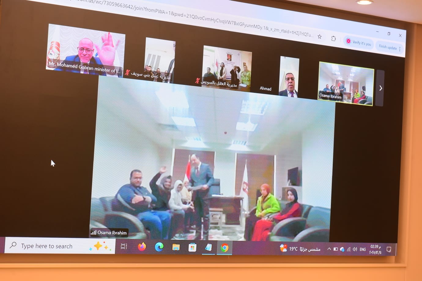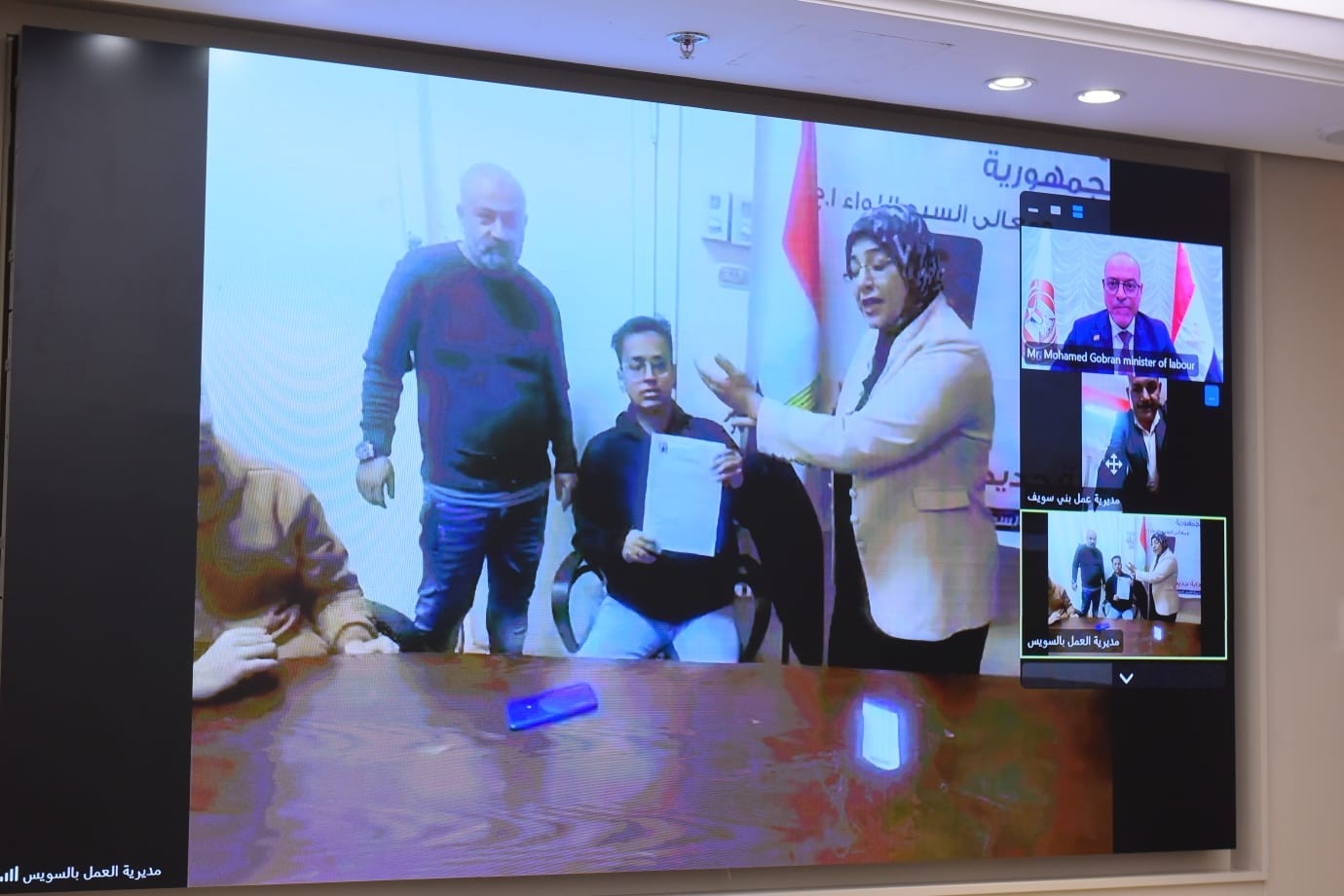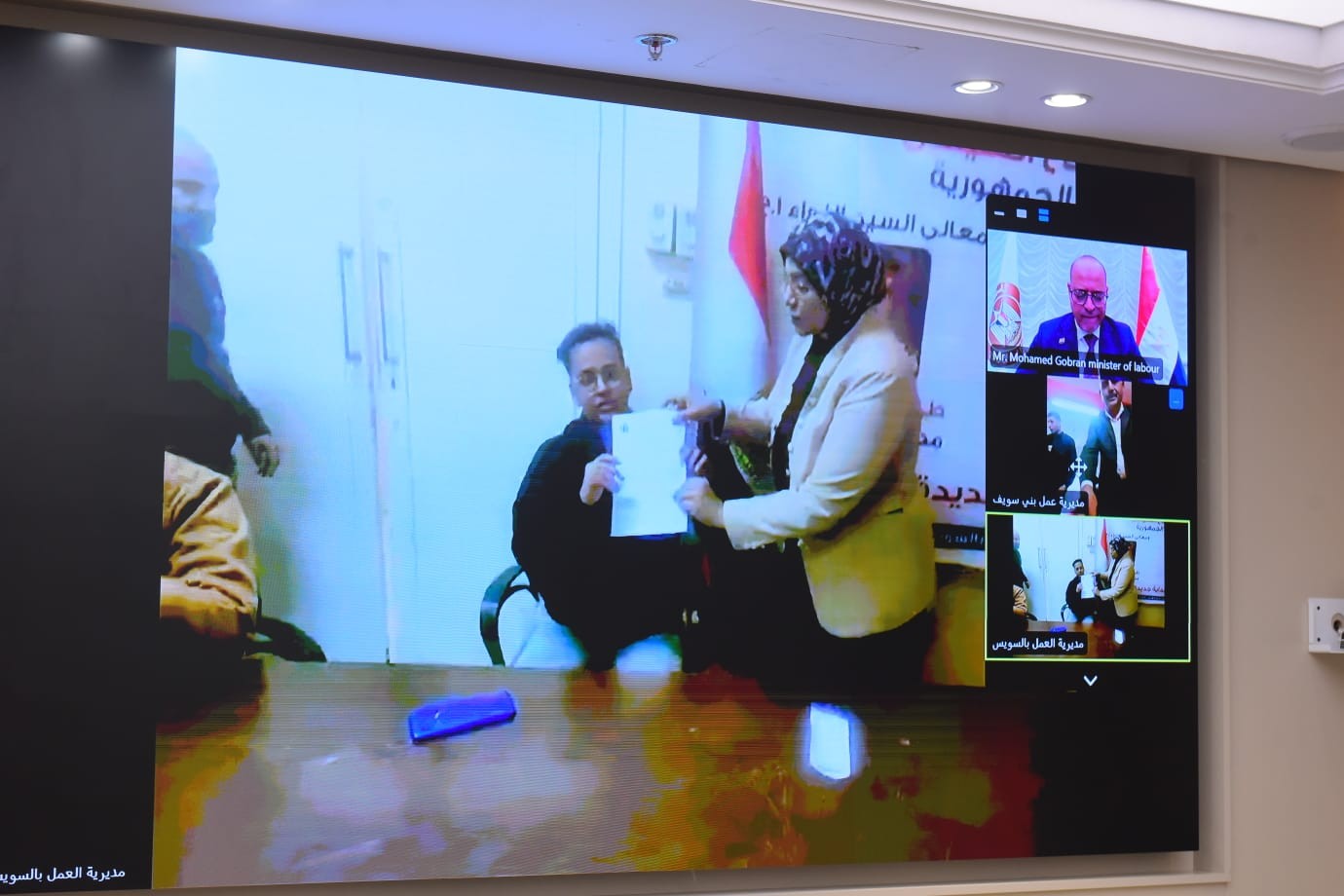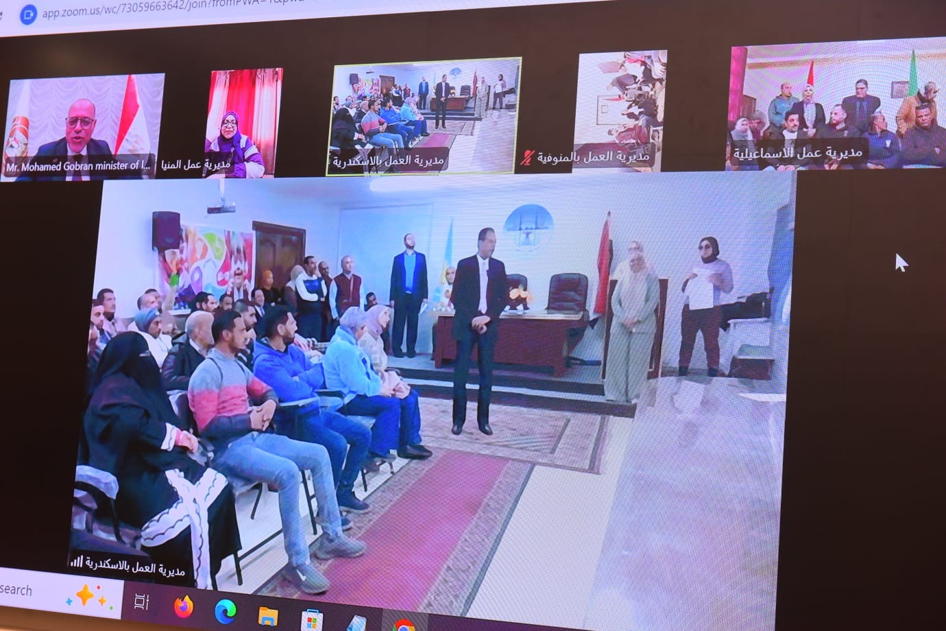 عبر الفيديو كونفرانس.. وزير العمل يشهد تسليم 405 عقد عمل لذوي همم في 27 محافظة