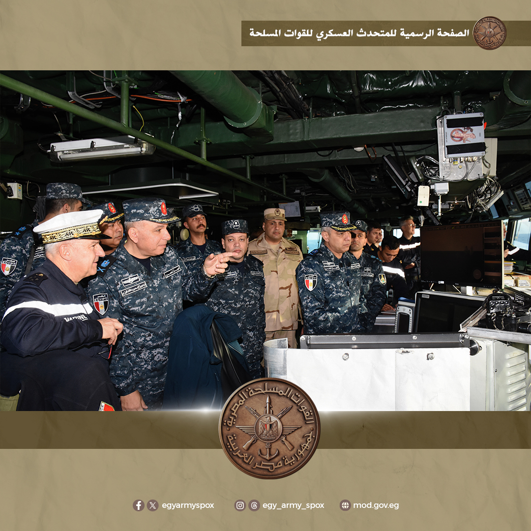 حضر المرحلة الرئيسية للتدريب اللواء أ ح / محمود عادل فوزى قائد القوات البحرية والفريق / كريستوف لوكا قائد الأسطول الفرنسى بالبحر المتوسط والبحر الأسود وعدد من قادة القوات البحرية المصرية والفرنسية .