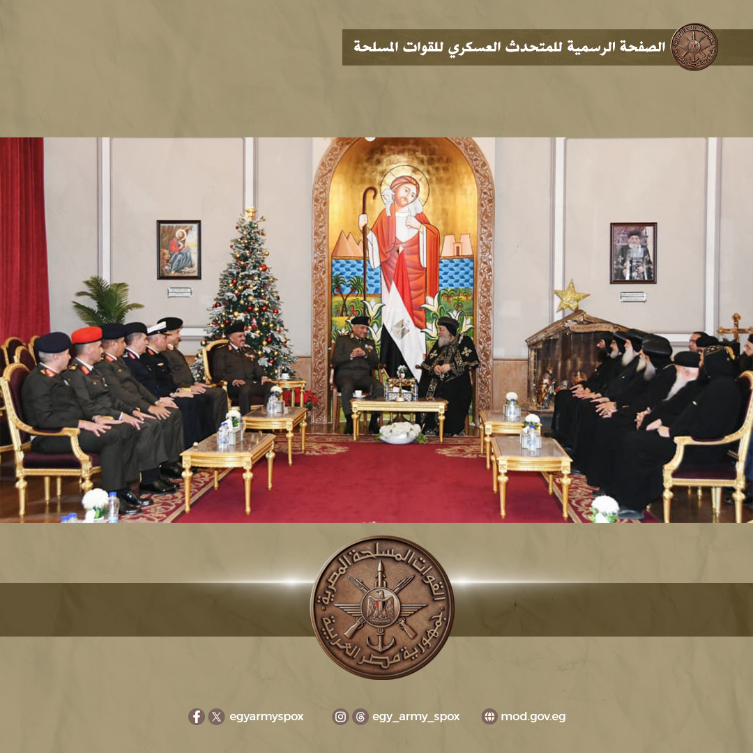 قام الفريق أول عبد المجيد صقر القائد العام للقوات المسلحة وزير الدفاع والإنتاج الحربى يرافقه الفريق أحمد خليفة رئيس أركان حرب القوات المسلحة وقادة الأفرع الرئيسية وعدد من قادة القوات المسلحة، بتقديم التهنئة لقداسة البابا تواضروس الثانى بابا الإسكندرية وبطريرك الكرازة المرقسية بمناسبة عيد الميلاد المجيد وذلك بمقر الكاتدرائية المرقسية بالعباسية .