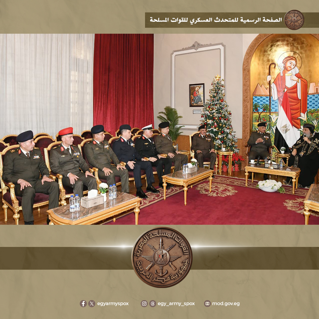 من جانبه أعرب البابا تواضروس الثانى عن إعتزازه وتقديره لرجال القوات المسلحة الذين يمثلون صمام الأمان بما يقدمونه من جهود وتضحيات لحماية مقدرات شعب مصر العظيم، مؤكداً أن هذه الزيارة تعكس المعنى الحقيقى للتلاحم الوطنى وتؤكد أننا نعيش فى وطن لا يفرق بين أبنائه بل يجمعهم تحت مظلة واحدة من الحب والعمل لرفعة وطننا الغالى.