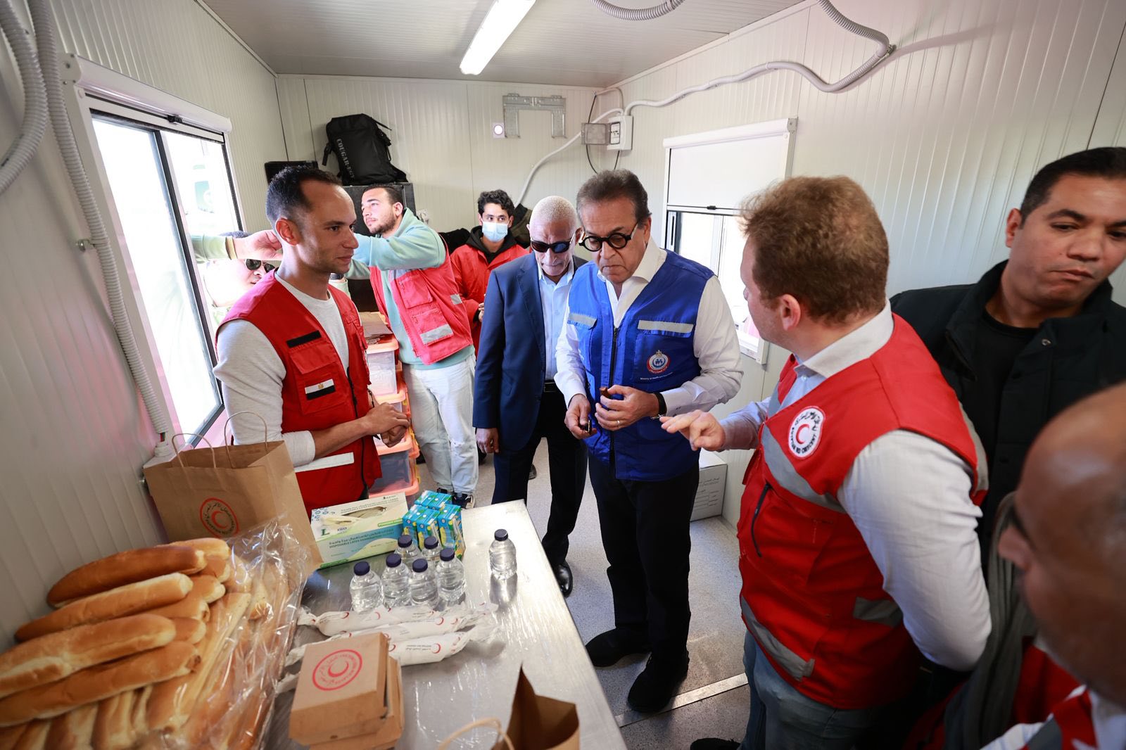 استقبل الوزير والمحافظ عدداً من المصابين والجرحى الوافدين من غزة، وتفقد نقطة الحجر الصحي بالمعبر، حيث اطمأن على توافر مخزون استراتيجي كافٍ من الأدوية والتطعيمات، ووجود 40 طبيباً، إلى جانب تمركز 60 سيارة إسعاف موزعة بشكل استراتيجي، وعيادات متنقلة، ونقطة رعاية حرجة، وفرق طبية متخصصة، وسيارة أشعة متطورة.