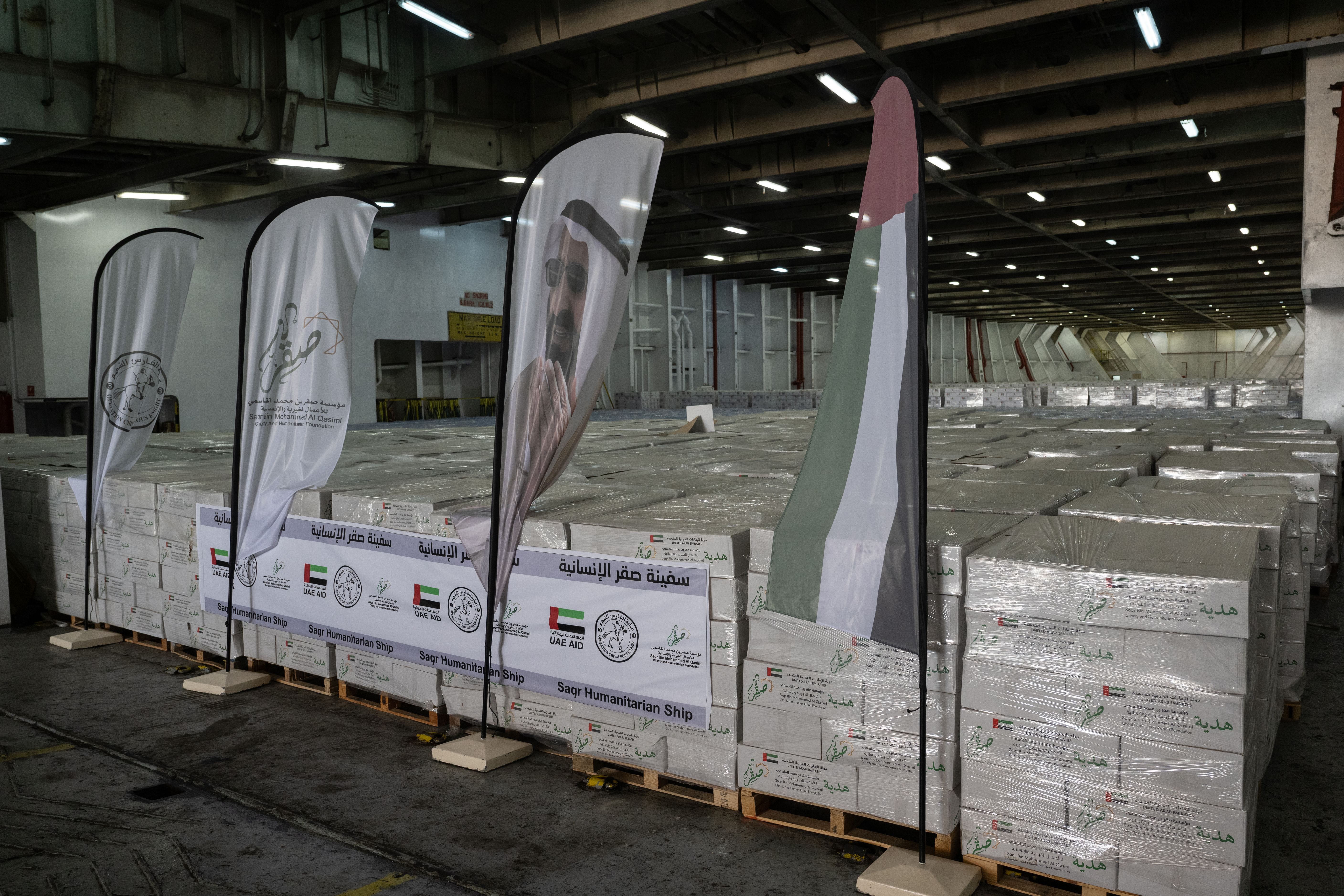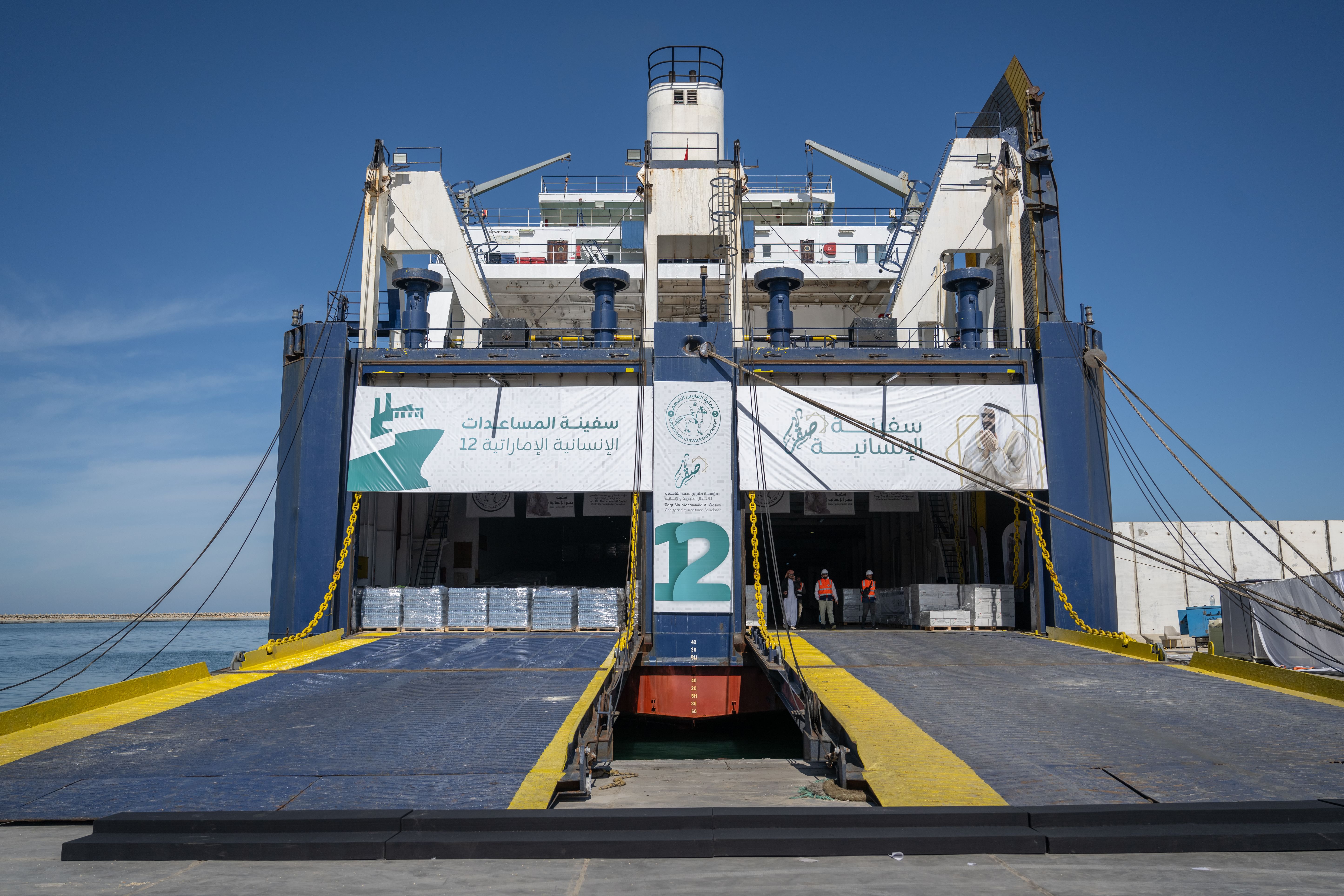 وتم، لدى وصول السفينة إلى ميناء العريش، استلامها من قبل فريق المساعدات الإنسانية الإماراتية، وبدء إجراءات تفريغ المساعدات الإنسانية ونقلها إلى المركز اللوجيستي للمساعدات الإنسانية الإماراتية في العريش، تمهيداً لإدخالها إلى قطاع غزة بالتنسيق مع الجهات الرسمية والشركاء الإنسانيين المعنيين.