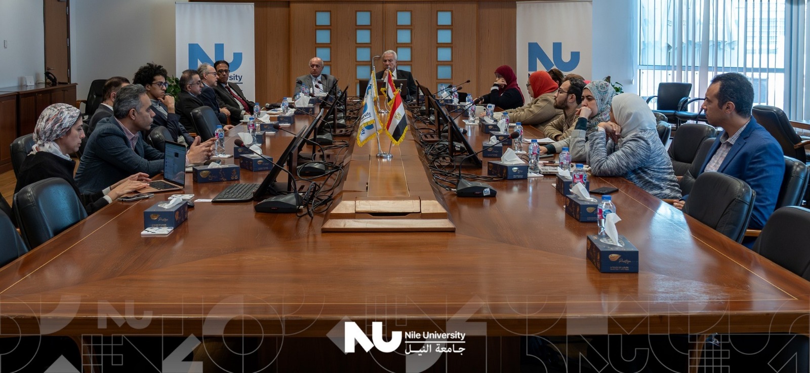 ترأس الجلسة الافتتاحية الدكتور عصام رشدي، القائم بأعمال رئيس جامعة النيل، بحضور الدكتور عمرو صفوت القائم بأعمال نائب رئيس الجامعة للشؤون الأكاديمية، وعدد من أعضاء هيئة التدريس والباحثين، حيث أكد الدكتور عصام رشدي، على التزام الجامعة بتوسيع شبكة شراكاتها البحثية الدولية، وتعزيز دورها كمحور إقليمي للبحث العلمي التطبيقي في مجالات الطاقة والمياه.