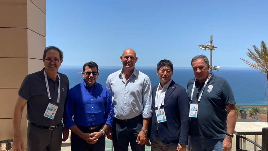 عقد المهندس هشام حطب رئيس اللجنة الأولمبية المصرية اجتماع بمقر اقامة بعثة مصر المشاركة في دورة ألعاب البحر