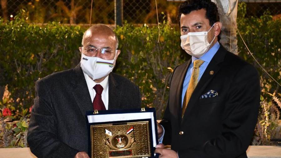 كرم الدكتور أشرف صبحي وزير الشباب والرياضة ديفيد لابرتيان رئيس الاتحاد الدولي للدراجات والدكتور وجيه عزام ر