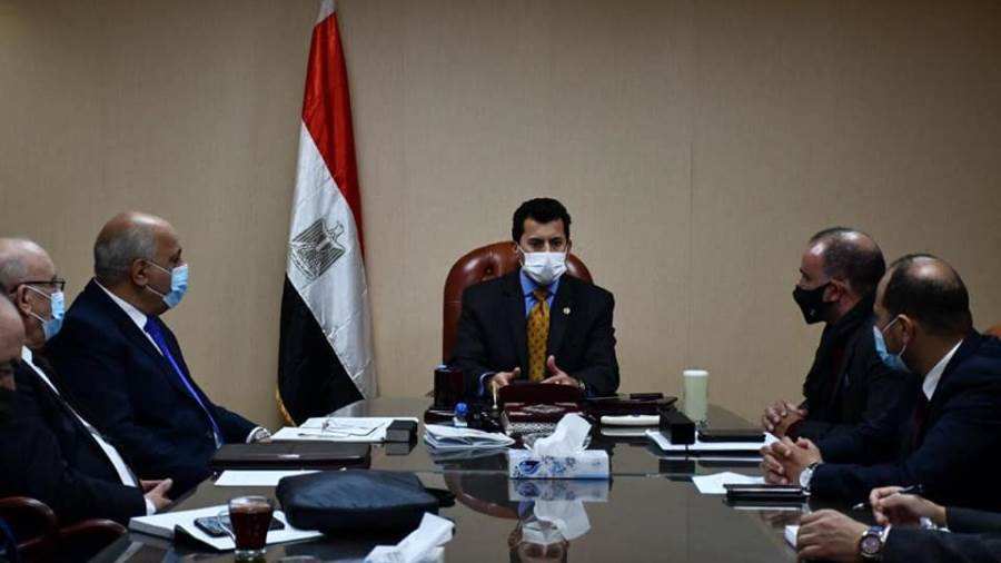 التقي الدكتور أشرف صبحى وزير الشباب والرياضة اللواء حازم حسني رئيس الاتحادين المصري والافريقي للرماية وعب