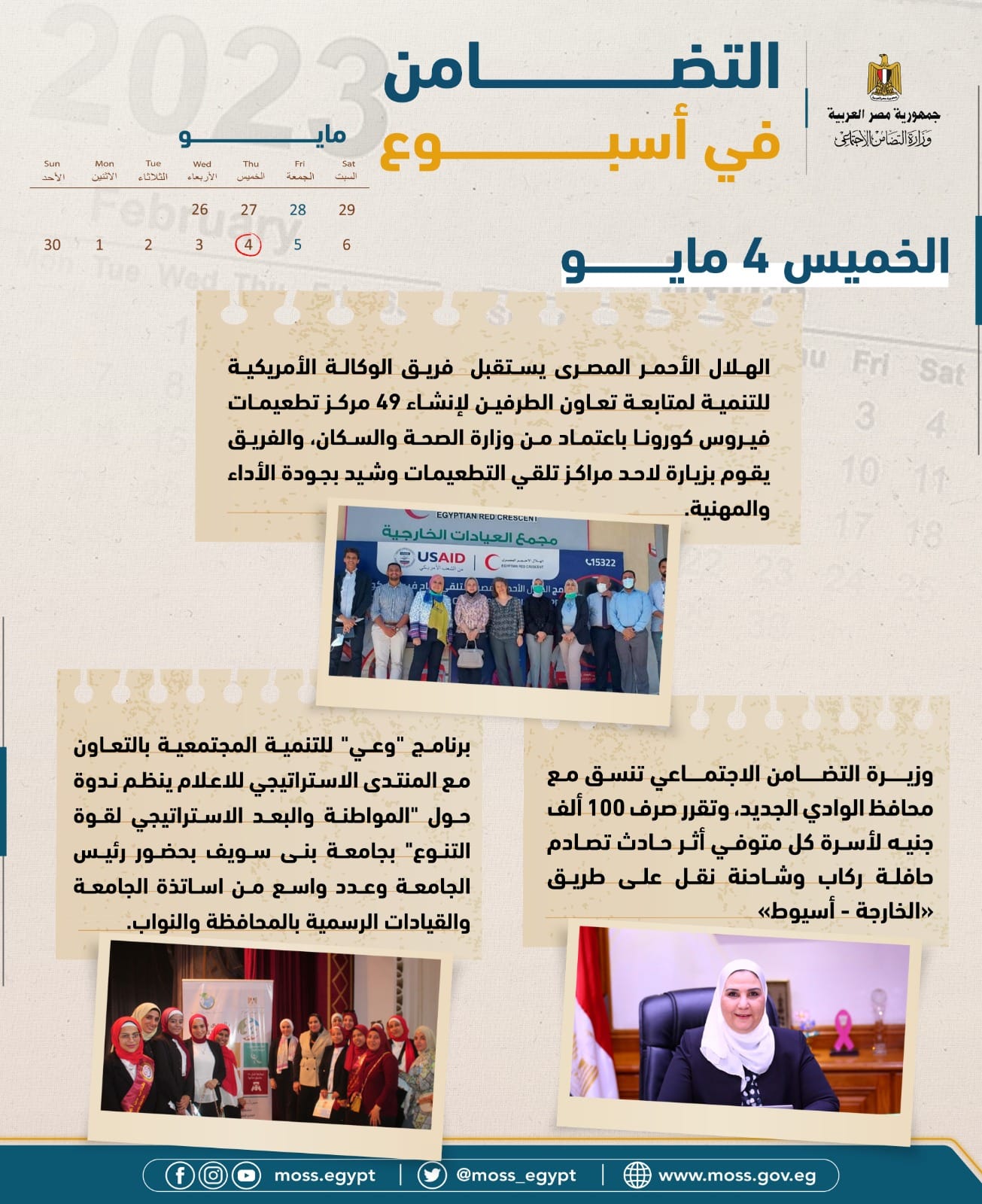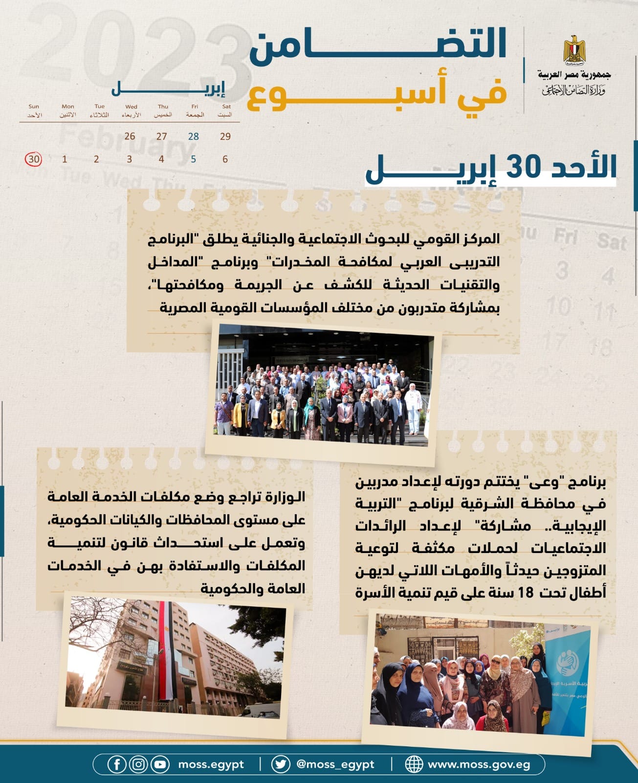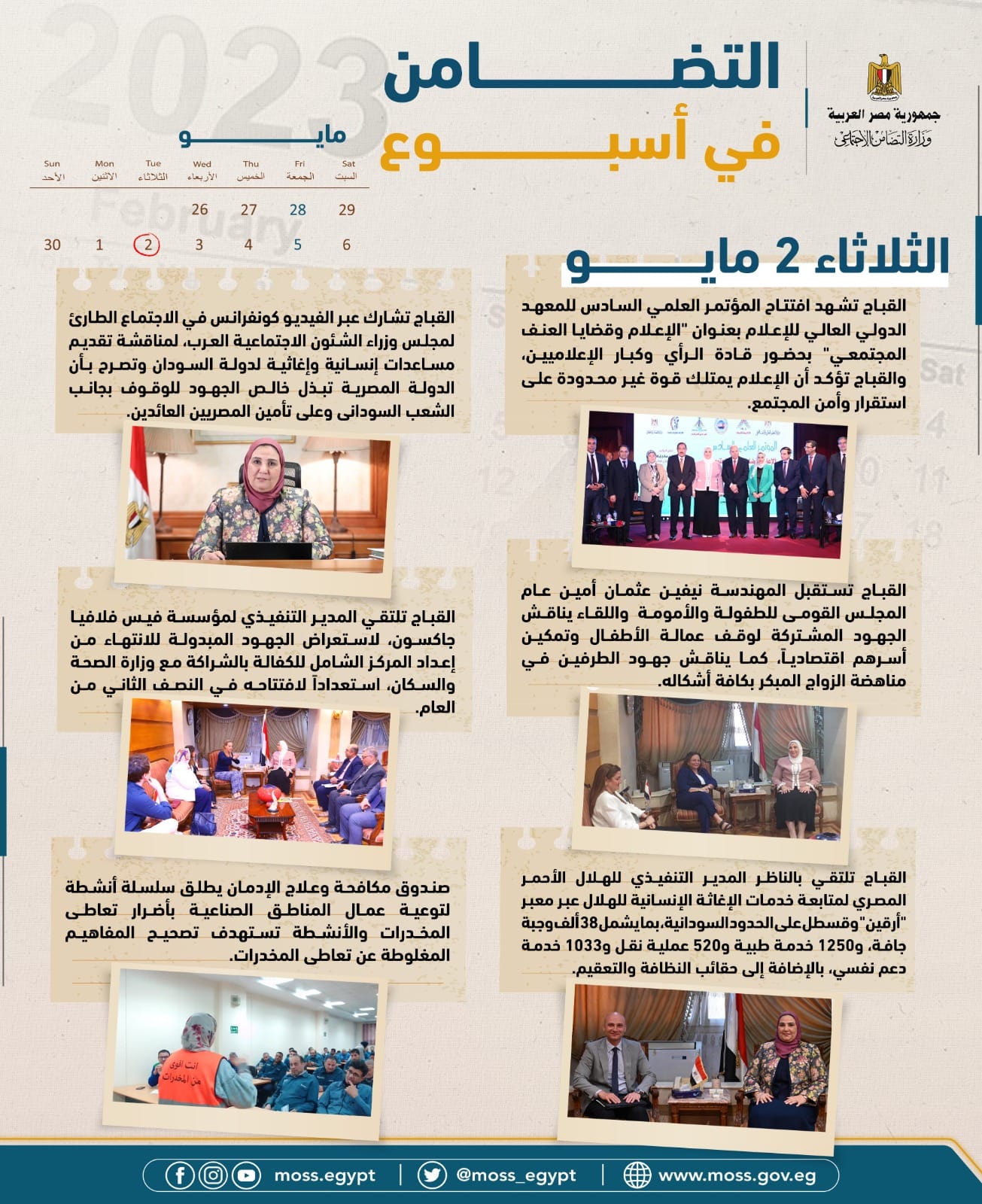 التقرير الأسبوعي لوزارة التضامن الاجتماعي في الفترة من 28 أبريل حتى 4 مايو 2023