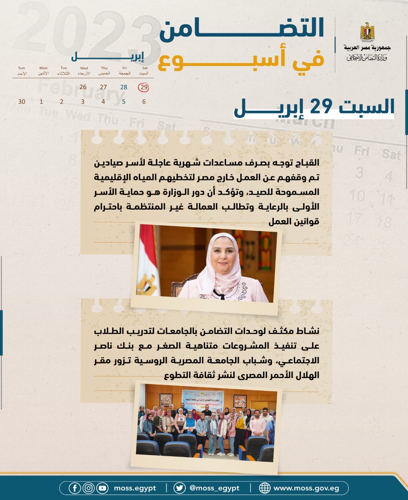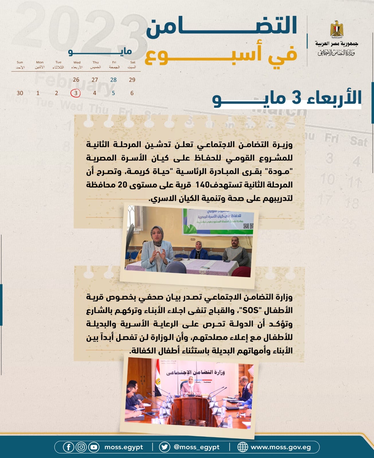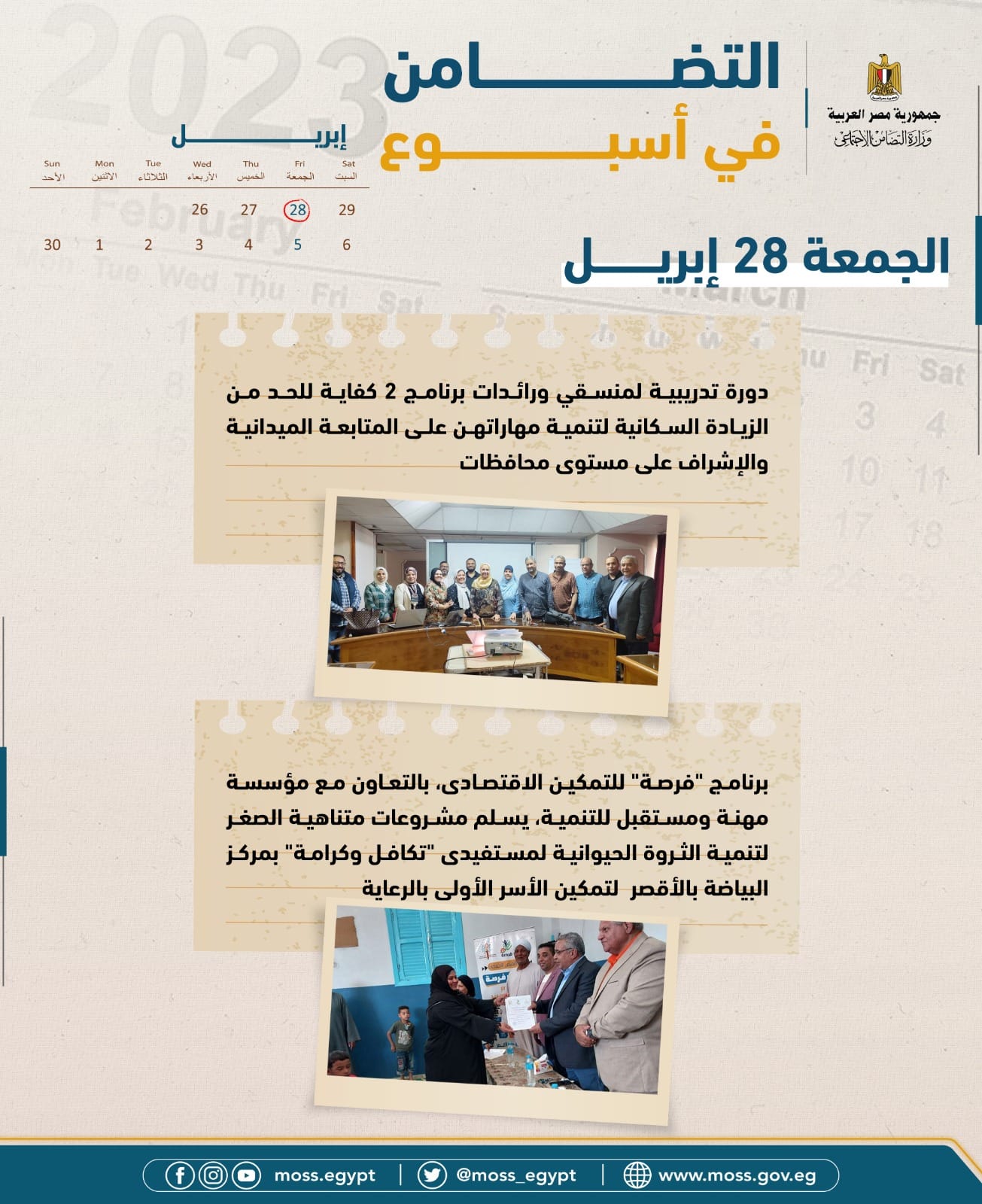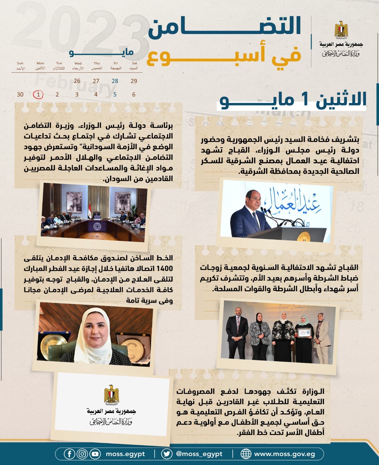 التقرير الأسبوعي لوزارة التضامن الاجتماعي في الفترة من 28 أبريل حتى 4 مايو 2023