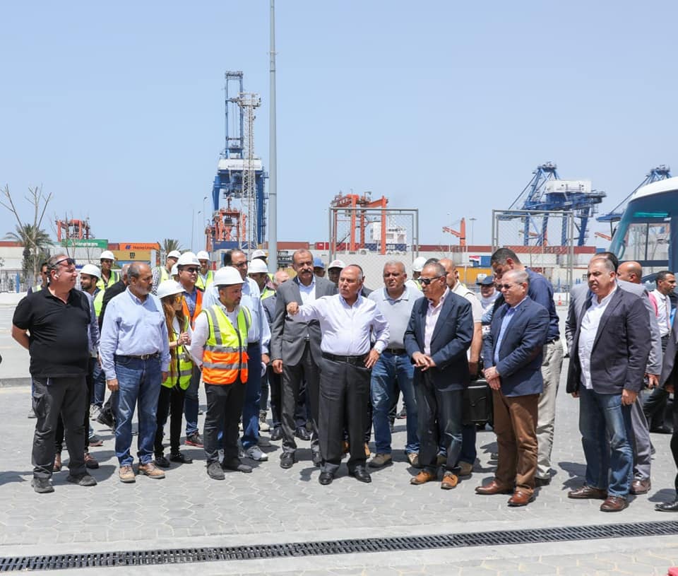وزير النقل يتفقد المناطق الخاصة بتداول الحاويات