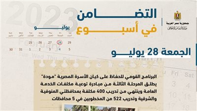 وحول أهم المعارض الخارجية المنتظر مشاركة مصر بها أفادت التضامن الاجتماعي أنها تشمل المعرض العربي للأسر المنتجة والذي سيقام في أكتوبر المقبل بقطر ومهرجان كانكيس ويقام في نوفمبر المقبل بكوت ديفوار ومعرض المنامة بالبحرين ويقام في الفترة من 7 إلى 9 ديسمبر المقبل ومعرض بالمدينة العالمية بدبي ويمتد من 18 أكتوبر المقبل وحتي 18 ابريل 2024.