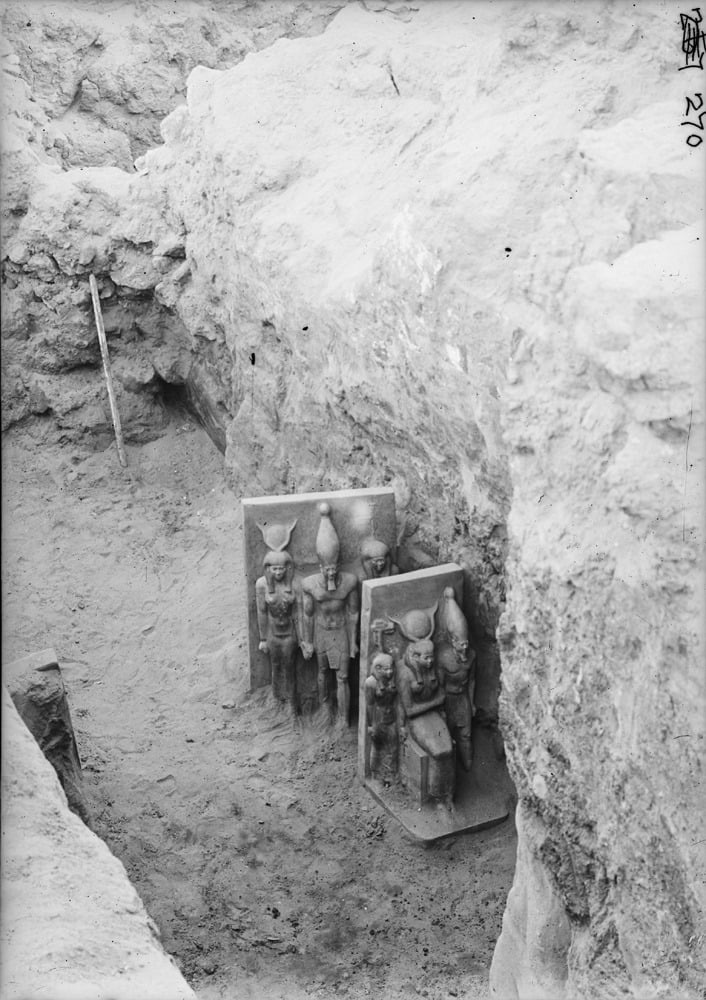 المتحف المصري بالتحرير ينشر صورًا للحظة اكتشاف تماثيل الملك منكاورع بمنطقة الأهرامات