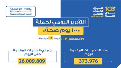 وقال «عبدالغفار» إن حملة «100 يوم صحة» قدمت خدمات مبادرة الرئيس لفحص الأورام السرطانية (البروستاتا - القولون- الرئة - عنق الرحم) بملئ 983 ألفا و694 استمارة استبيان، مضيفا أن إجمالي المترددين على القوافل الطبية، بلغ 665 ألفا و231 مواطنين.