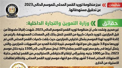 أكد وزير التموين والتجارة الداخلية الدكتور علي المصيلحي، أن الاحتياطي الاستراتيجي من القمح آمن ويكفي لمدة 4،8 شهر.