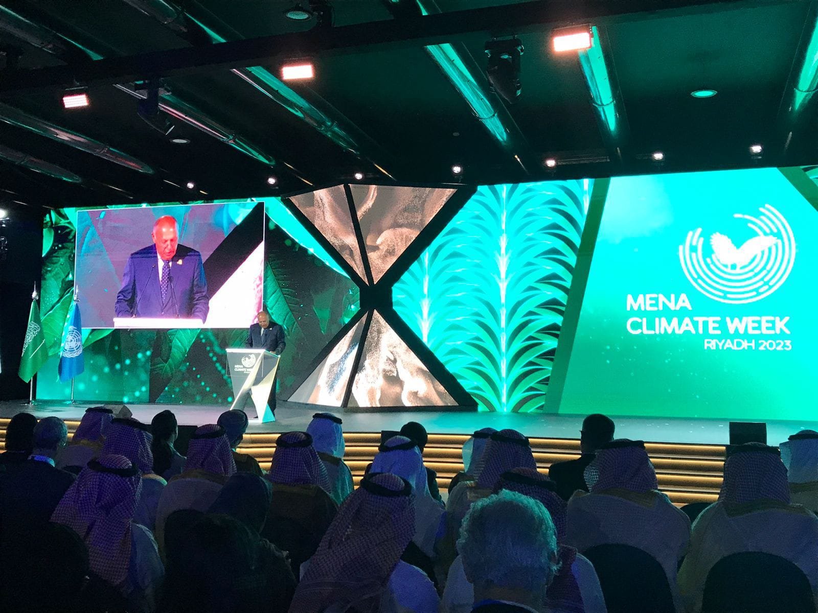شارك سامح شكري وزير الخارجية اليوم الأحد بصفته رئيس الدورة الـ27 لمؤتمر المناخ COP27 في أسبوع المناخ في منطقة الشرق الأوسط وشمال إفريقيا لعام 2023، والذي يعقد خلال الفترة من 8 إلى 12 أكتوبر الجاري بالعاصمة السعودية الرياض، حيث ألقى كلمة خلال الجلسة الإفتتاحية لتلك الاجتماعات،