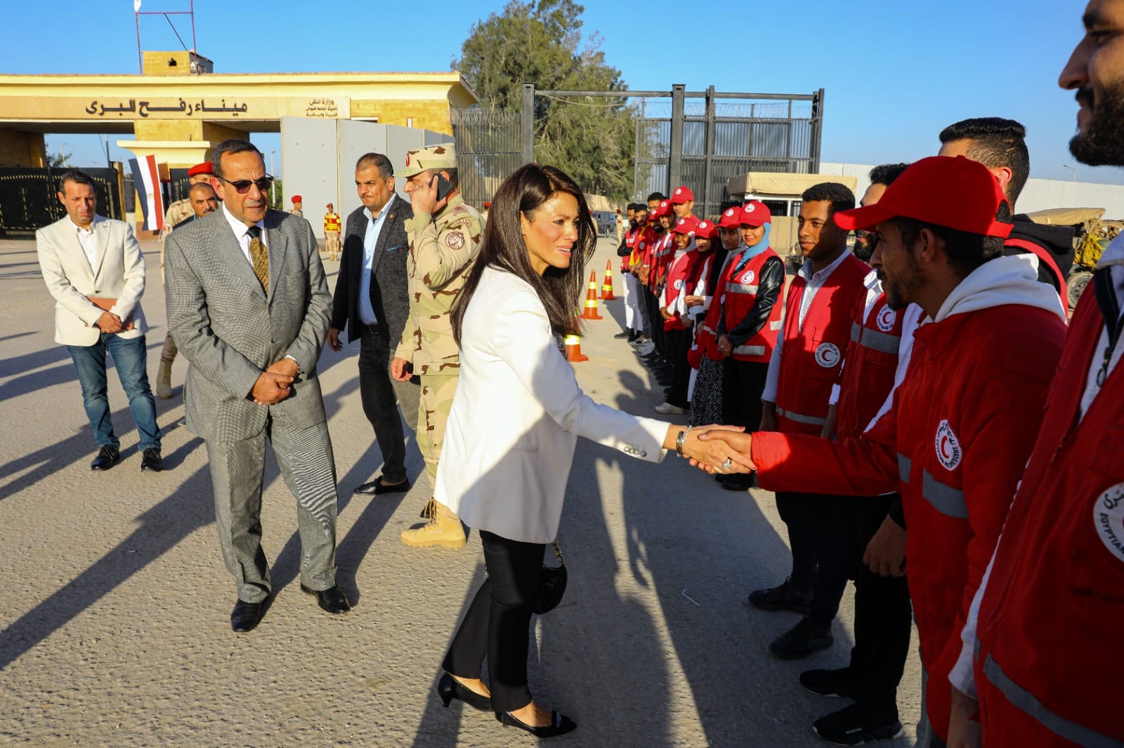 رافقت الدكتورة رانيا المشاط، وزيرة التعاون الدولي، بيدرو سانشيز، رئيس وزراء إسبانيا، وألكسندر دي كرو، رئيس وزراء بلجيكا، خلال زيارتهما لمعبر رفح البري.