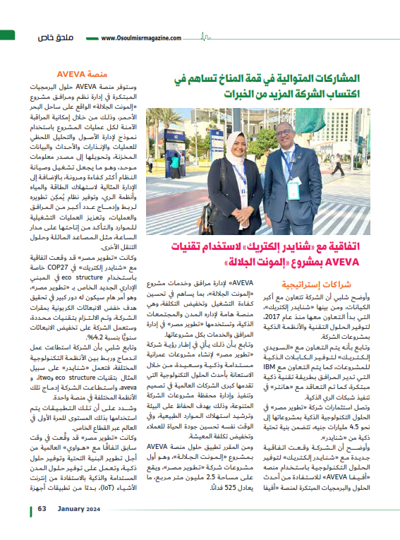 اتفاقية مع «شنايدر إلكتريك» لاستخدام تقنياتAVEVA بمشروع «إلمونت الجلالة»