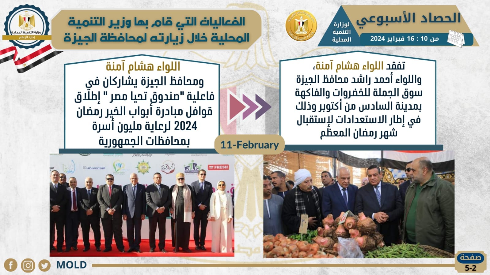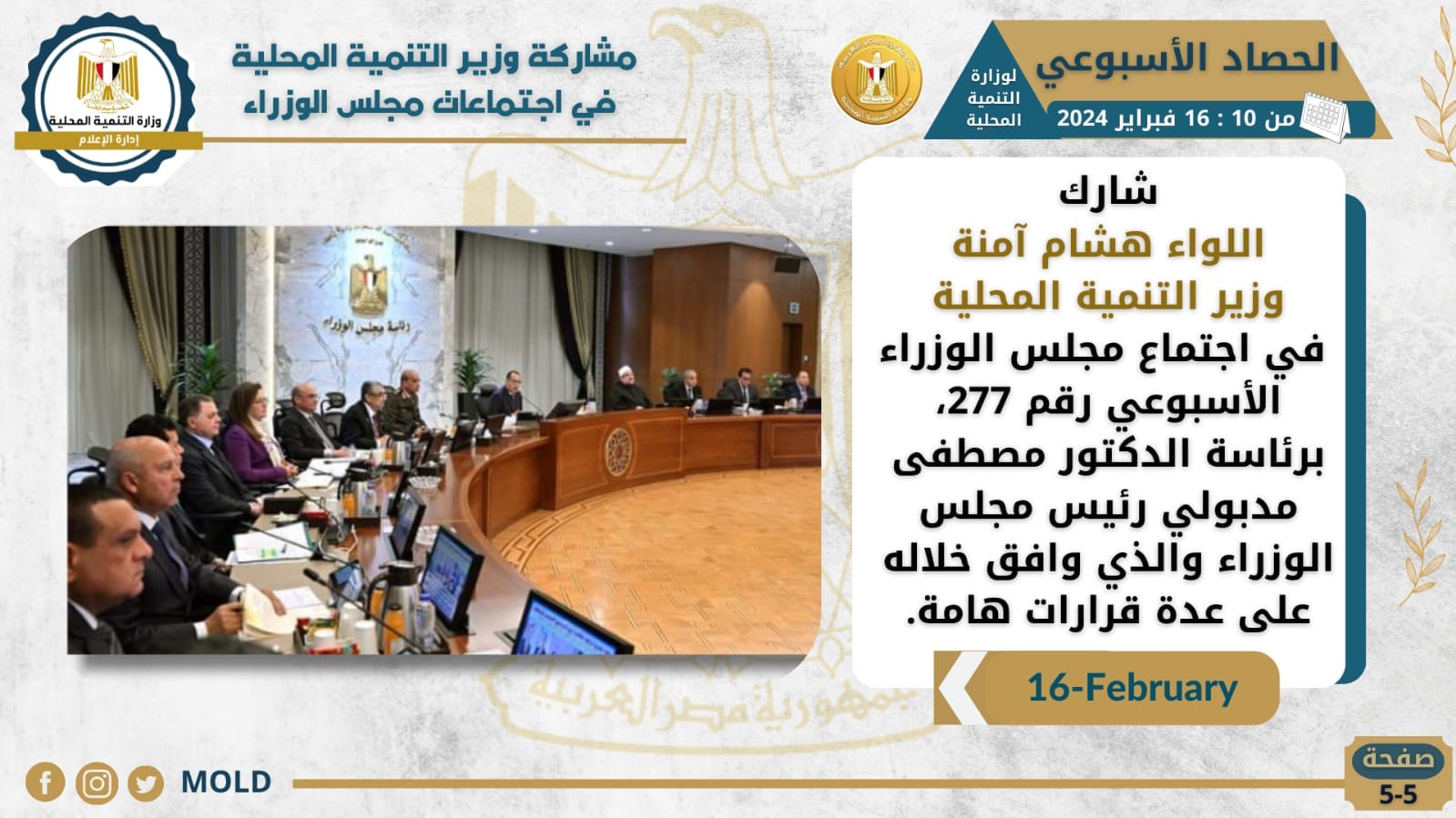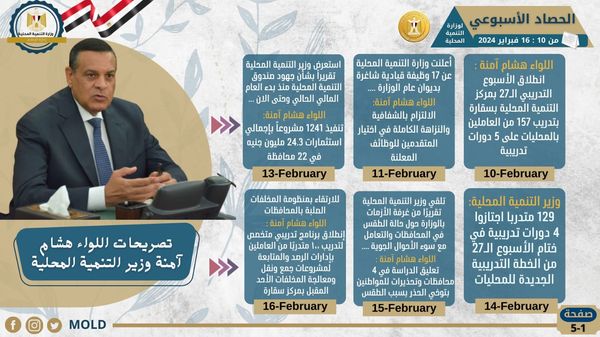 الحصاد الأسبوعي لـ«التنمية المحلية» في الفترة من 10 حتي 16 فبراير 2024