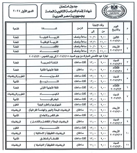نشرت وزارة التربية والتعليم جدول امتحانات الثانوية العامة بعد اعتماده من الدكتور رضا حجازي وزير التربية والتعليم والتعليم الفني.
