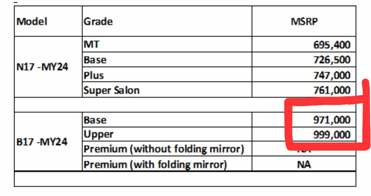 فيما طرحت فئة جديدة premium with folding miror بسعر 1.099.00 مليون جنيه، وطرحت الشركة فئة جديدة، وألغت الفئة الأولى من السيارة نيسان سينترا.