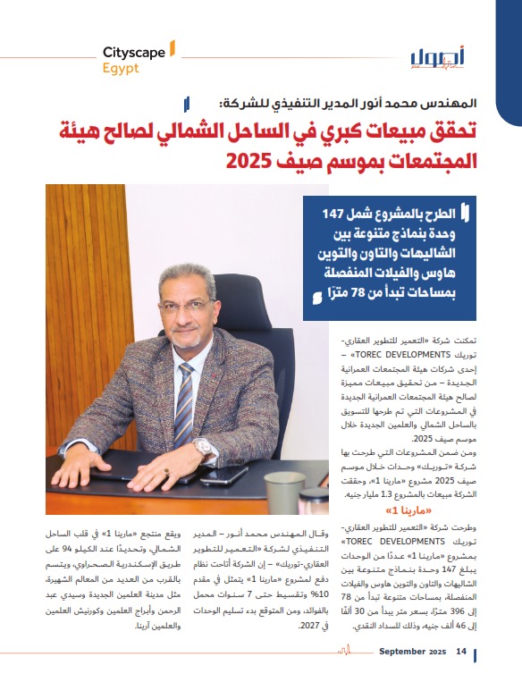 «التعمير للتطوير العقاري-توريك» تحقق مبيعات كبري في الساحل الشمالي لصالح هيئة المجتمعات بموسم صيف 2025