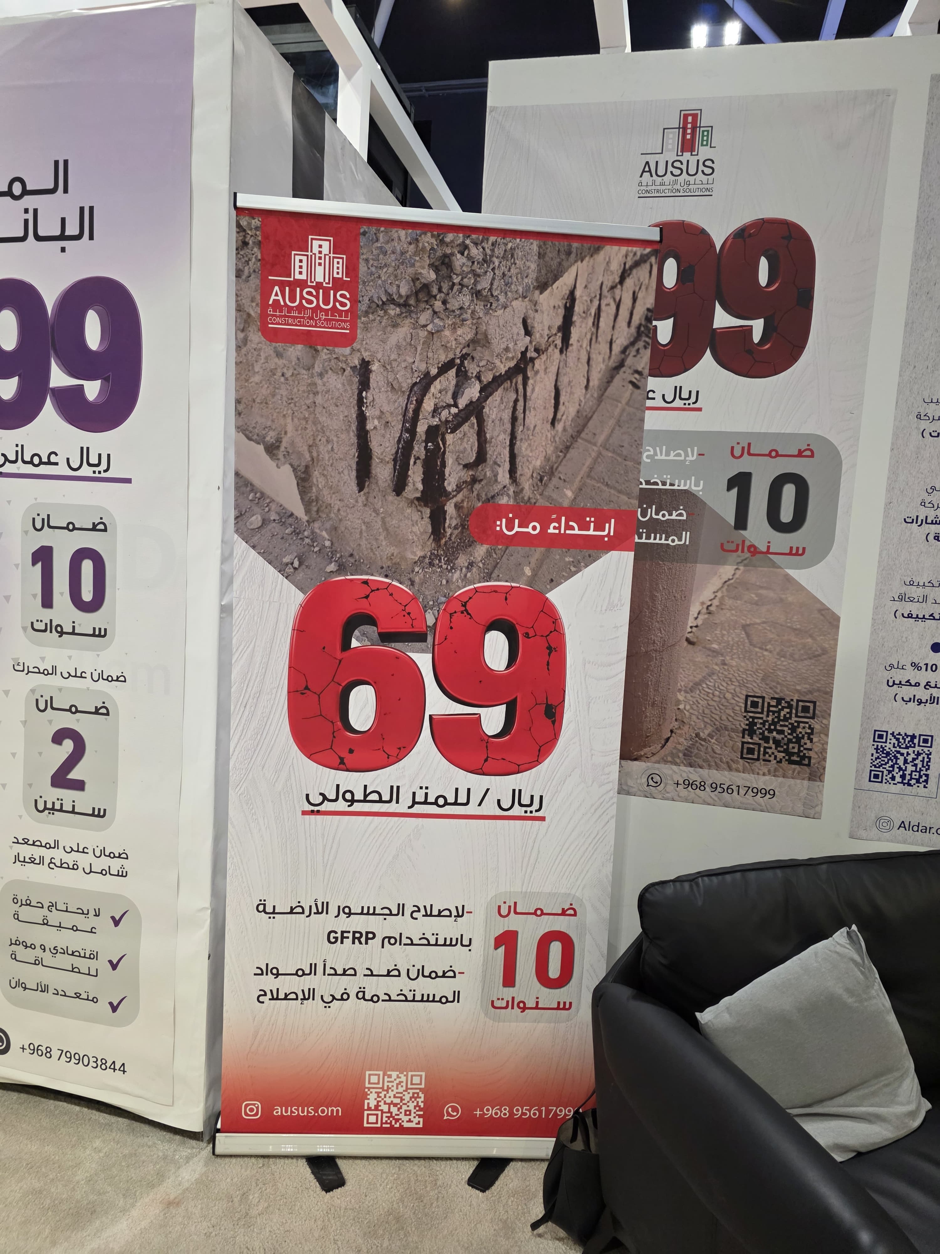 وتقدم الشركة خدمات الإصلاح بأسعار تبدأ من 69 ريالًا عمانيًا للمتر الطولي للجسور و299 ريالًا عمانيًا للمتر المربع للأعمدة، مؤكدة التزامها بأعلى معايير الجودة والاستدامة في أعمالها.