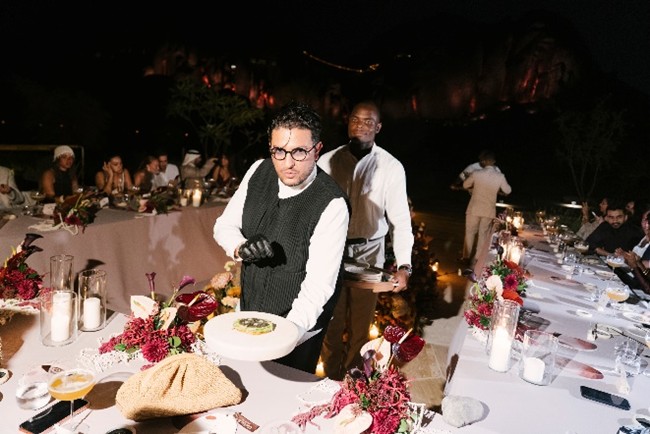 Chef Akrame Benallal added: “The first time I came to Saudi was ten years ago, and I felt a country and its people on the cusp of a magnificent transformation. Here I am, ten years later, in this unbelievable setting at Desert Rock, I served a dinner inspired by the aesthetic of the land, composed in six acts and grounded in Saudi ingredients to tell a story through taste.”