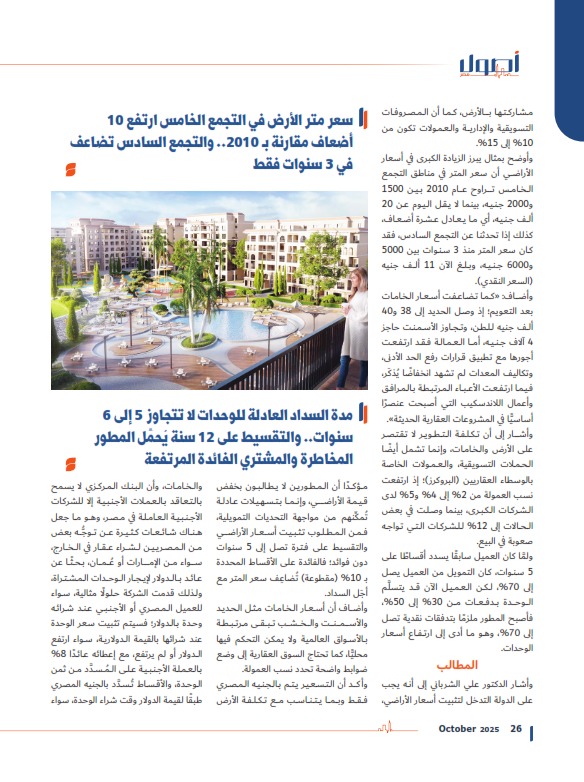 مدة السداد العادلة للوحدات لا تتجاوز 5 إلى 6 سنوات.. والتقسيط على 12 سنة يُحمِّل المطور المخاطرة والمشتري الفائدة المرتفعة