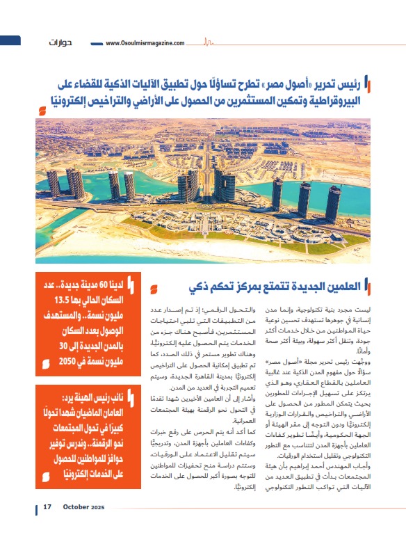 العلمين الجديدة تتمتع بمركز تحكم ذكي
