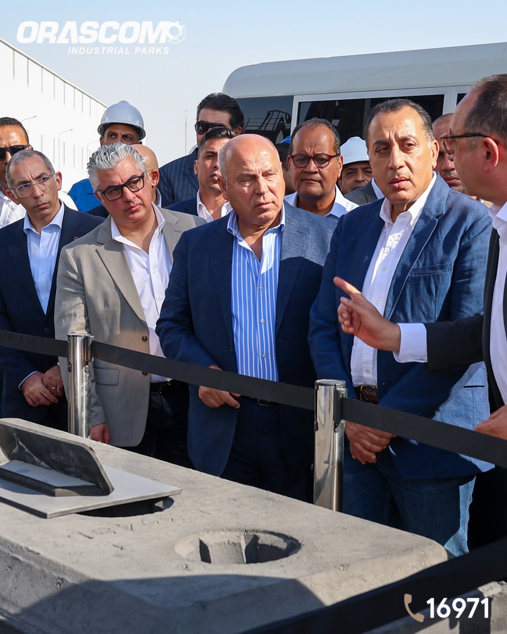 وقد رافق رئيس الوزراء في زيارته كلاً من الفريق مهندس/ كامل الوزير، نائب رئيس مجلس الوزراء للتنمية الصناعية، ووزير الصناعة والنقل، والمهندس/ محمد شيمي، وزير قطاع الأعمال العام، والأستاذ/وليد جمال الدين، رئيس الهيئة العامة للمنطقة الاقتصادية لقناة السويس، اللواء دكتور/ طارق حامد الشاذلي، محافظ السويس، إلى جانب المهندس عمرو البطريق، الرئيس التنفيذي لشركة أوراسكوم للمناطق الصناعية.