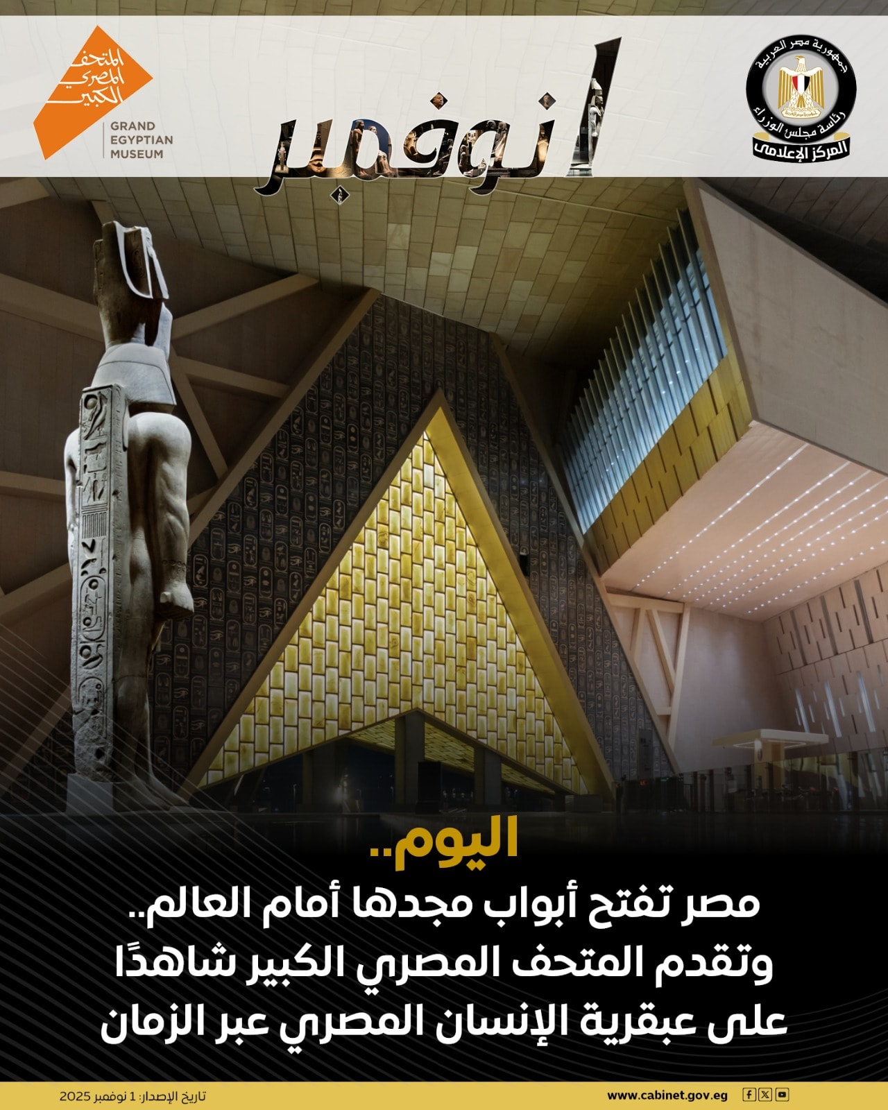 اليوم أنظار العالم تتجه نحو مصر.. افتتاح المتحف المصري الكبير