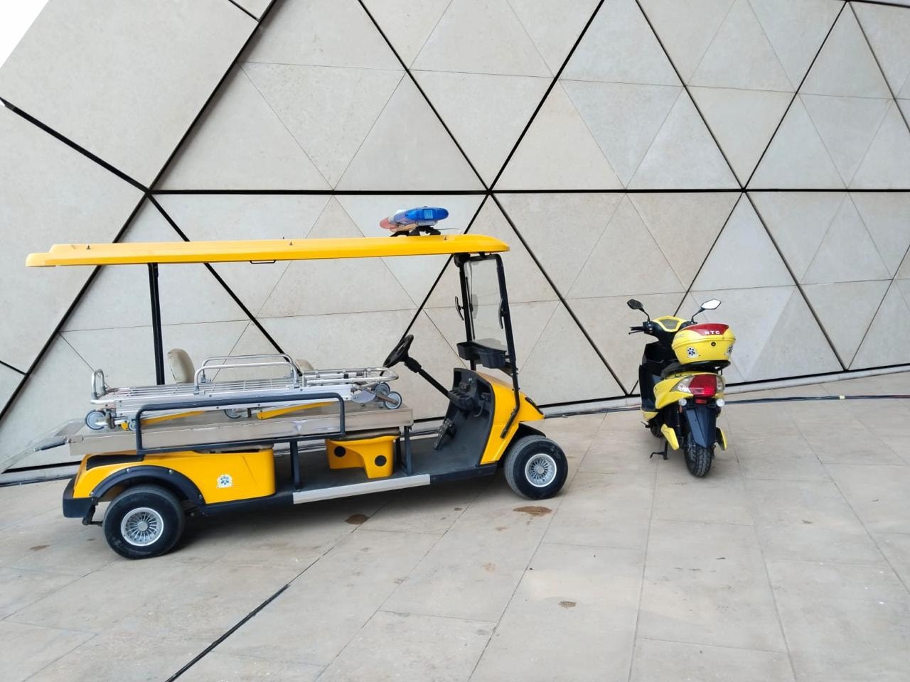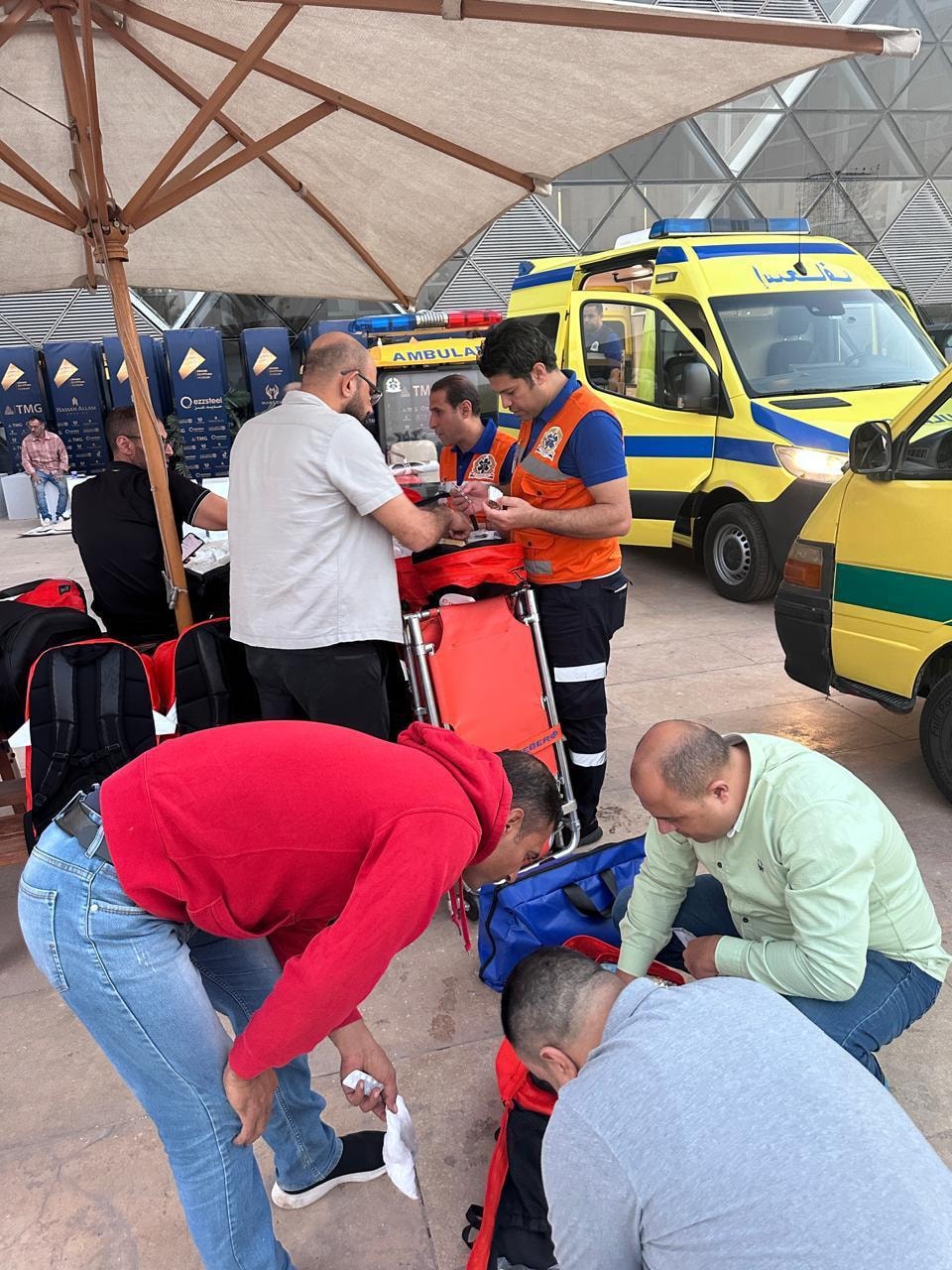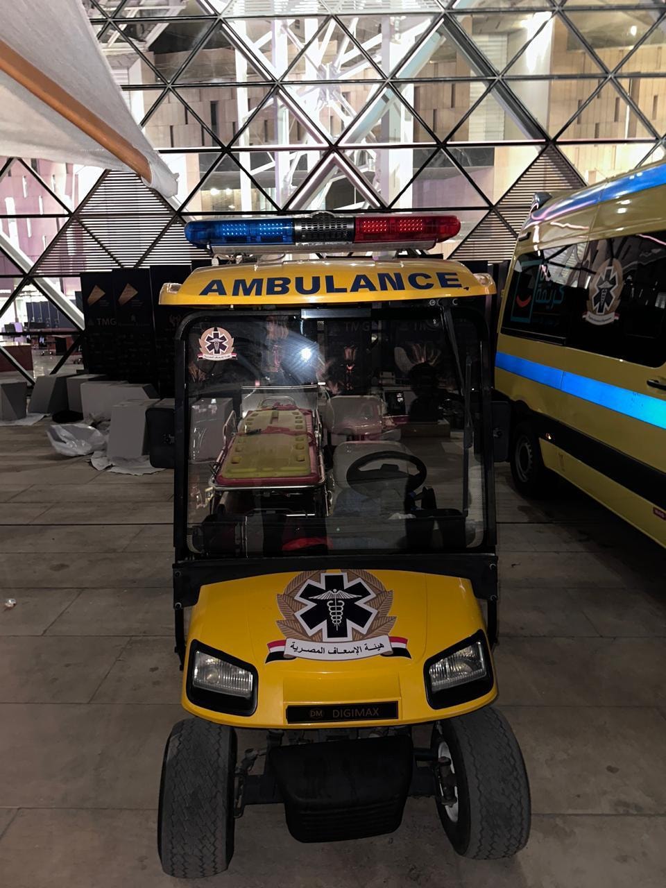 نشر 8 سيارات إسعاف حديثة ومزودة بمعدات الإنعاش والإسعاف الأولي داخل المتحف، بالإضافة إلى 15 سيارة متمركزة في نقاط استراتيجية حول المتحف، لضمان الوصول السريع إلى أي موقع داخل أو خارج المبنى