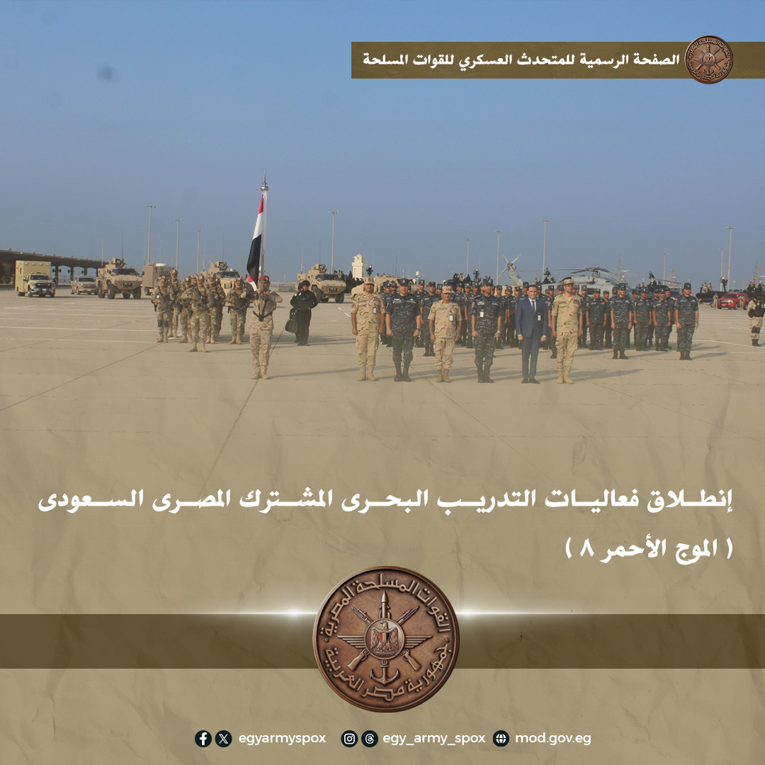 إنطلقت فعاليات التدريب البحرى المشترك المصرى السعودى ( الموج الأحمر 8 ) ، والذى يستمر لعدة أيام بالمملكة العربية السعودية بمشاركة عناصر من القوات البحرية لكلٍ من مصر والسعودية والأردن والسودان واليمن وجيبوتى .