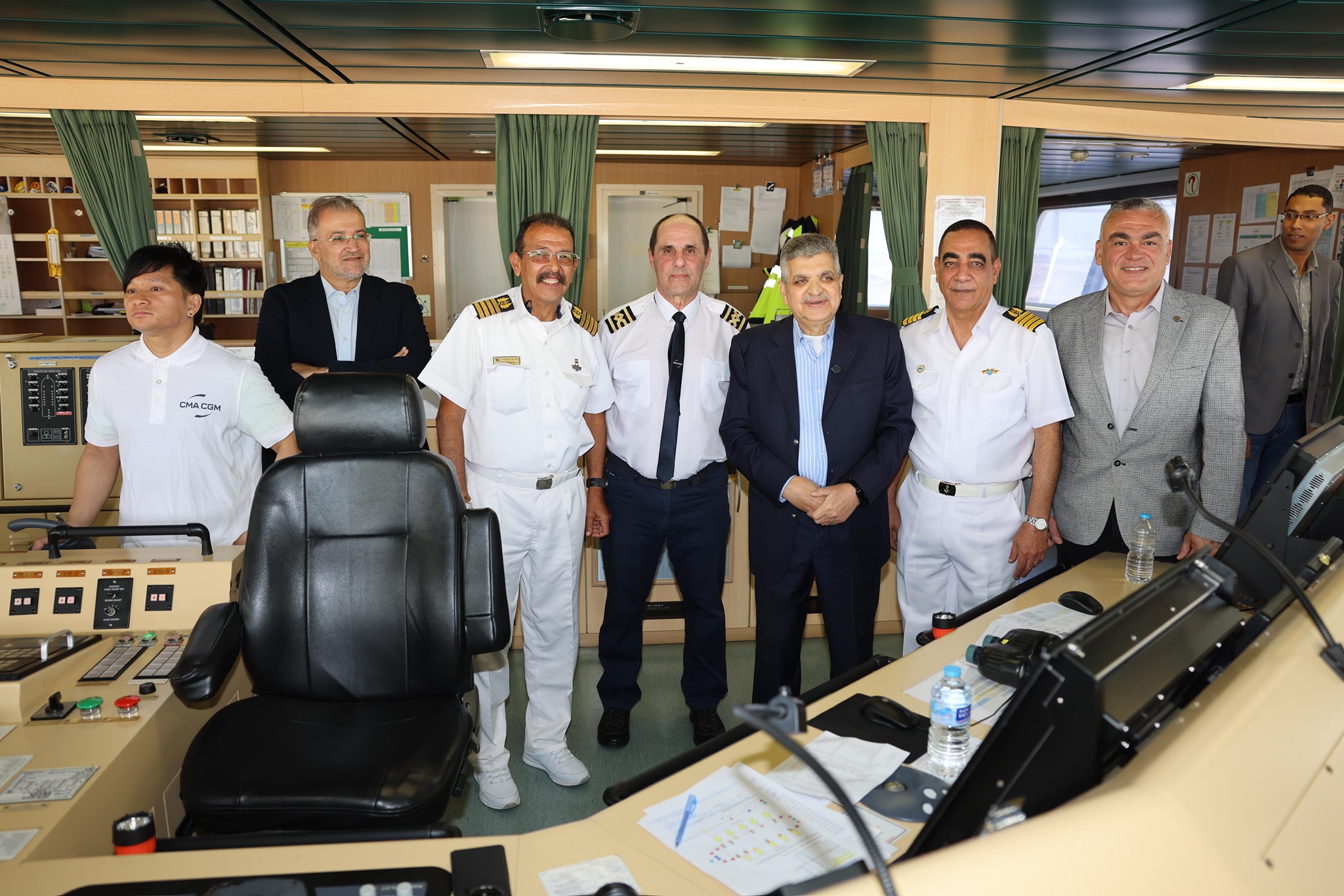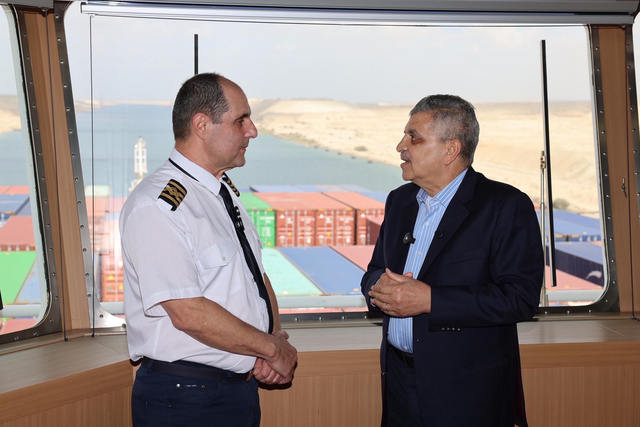 وخلال تواجده على متن السفينة حرص الفريق أسامة ربيع رئيس الهيئة على الترحيب بطاقم السفينة والتعرف على انطباعاتهم عن العبور بمنطقة البحر الأحمر وباب المندب، و مستوى الخدمات الملاحية المُقدمة من القناة، حيث كان في استقباله السيد طارق زغلول الرئيس التنفيذي لمجموعة CMA CGM في مصر والسودان والسيد عمرو الشافعي مدير قطاع العمليات بالشركة .