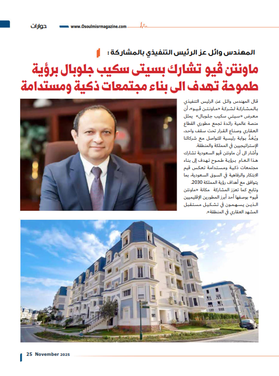 المهندس وائل عز : ماونتن ڤيو تشارك بسيتى سكيب جلوبال برؤية طموحة تهدف الى بناء مجتمعات ذكية ومستدامة