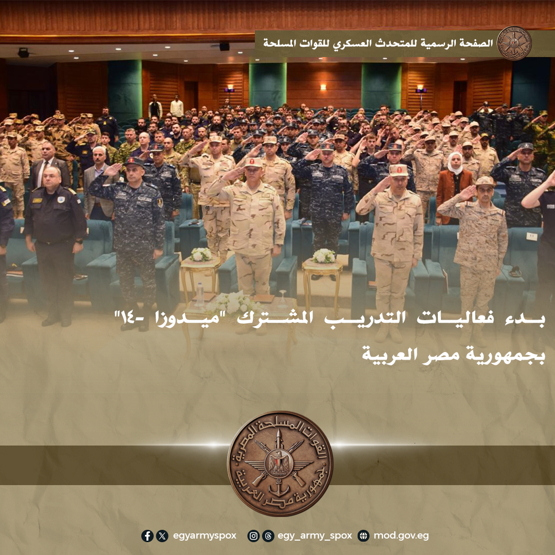 المتحدث العسكري: بدء فعاليات التدريب المشترك «ميدوزا-14» بجمهورية مصر العربية