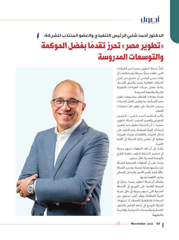 الدكتور أحمد شلبي : «تطوير مصر» تحرز تقدمًا بفضل الحوكمة والتوسعات المدروسة
