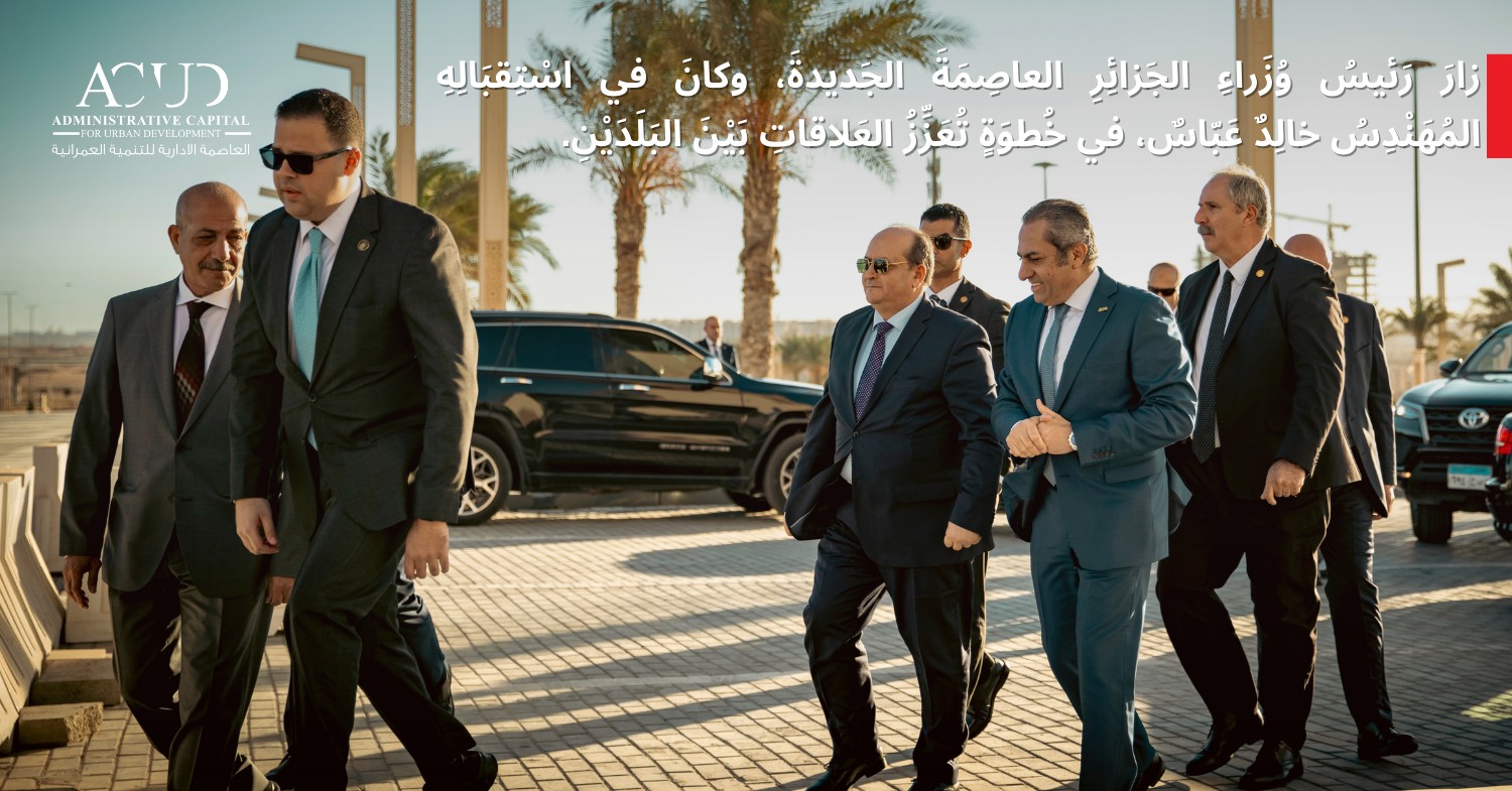 استقبل المهندس خالد عباس، رئيس مجلس إدارة شركة العاصمة الإدارية للتنمية العمرانية، رئيسَ وزراء الجزائر أيمن بن عبد الرحمن، خلال زيارته الرسمية إلى العاصمة الإدارية الجديدة، وذلك على هامش انعقاد الدورة التاسعة للجنة العليا المصرية-الجزائرية المشتركة.