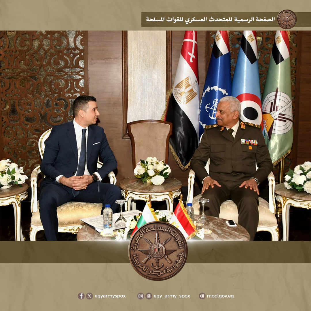 فى إطار حرص القيادة العامة للقوات المسلحة على تعزيز أواصر التعاون العسكرى مع الدول الشقيقة والصديقة وعلى هامش فعاليات اليوم الختامى للمعرض الدولى الرابع للصناعات الدفاعية ( إيديكس - 2025 ) ، إلتقى الفريق أول / عبد المجيد صقر القائد العام للقوات المسلحة وزير الدفاع والإنتاج الحربى بالسيد / جاى كابومبو موادايامفيتا نائب رئيس الوزراء ووزير الدفاع الوطنى بجمهورية الكونغو الديمقراطية ، والسيد / بيتر ديلوف وزير الإقتصاد والصناعة بجمهورية بلغاريا ،